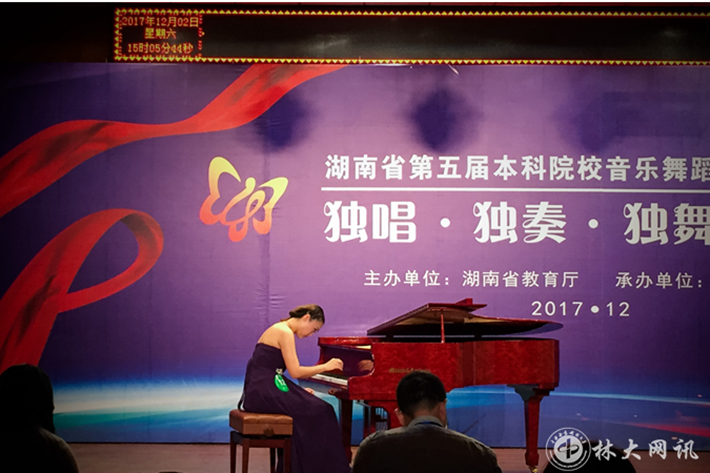 【林大网讯】(文/音乐学院 钟楚鲲)2017年12月2日,由湖南省教育厅举办,湘南学院承办的第五届普通高校音乐舞蹈本科专业学生“三独”比赛决赛(独唱、独奏、独舞)开始,来自全省21所高校的音乐、舞蹈专业近200名学生参加了比赛。音乐学院高度重视此次比赛,甄选出9位本科生、2位研究生共11名学生参赛。