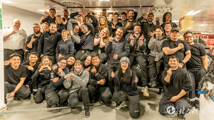 ▲唐星雨作为南极探险队员和世界各地同事合影