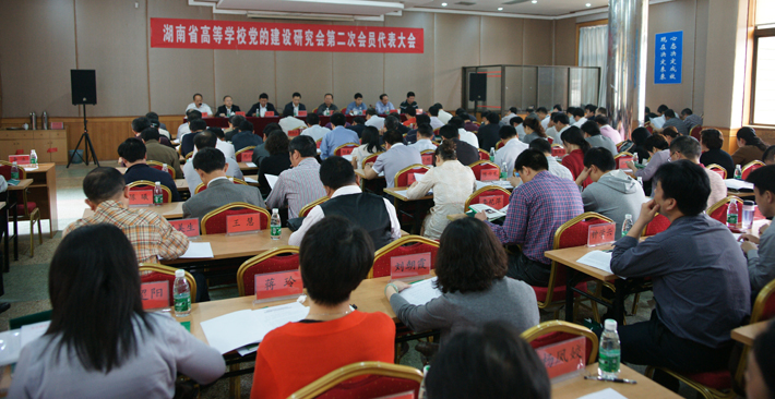 5月10日上午,湖南省高等学校党的建设研究会第二次会员代表大会在我校培训中心会议室召开。省教育工委副书记夏智伦、省社科联副主席郑升、省高校巡视第一组组长李红、省委组织部干部四处处长张宏益、湘潭大学党委副书记李伯超、我校校领导曾思齐、秦立春、蔡玉梅和各会员单位代表150余人参加会议。会议由省教育工委组织部部长蒋明主持。