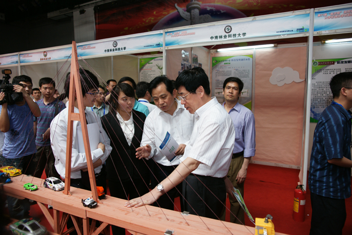开幕式后,与会领导、嘉宾到体育艺术馆参观了“挑战杯”大学生课外学术科技作品展示。