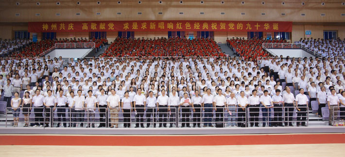 6月29日,我校纪念中国共产党成立90周年大会在体育艺术馆隆重举行。全体校领导、学校老领导、全体共产党员、部分入党积极分子参加大会,各民主党派主委及党外人士代表受邀出席会议。校长周先雁主持大会。