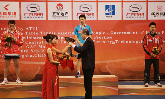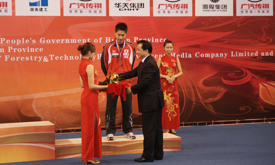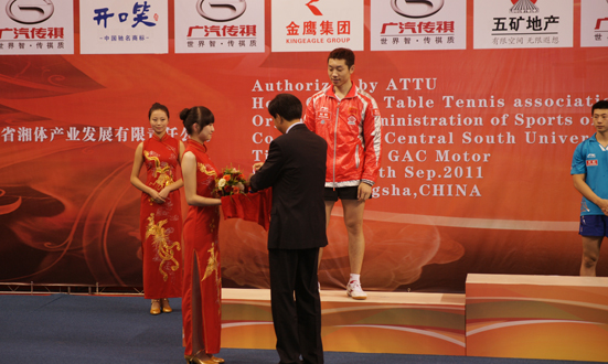 9月30日晚,经过三天的激烈比拼,第24届“亚洲杯”乒乓球赛在我校体艺馆圆满落幕。省委常委、副省长郭开朗,湖南省体育局局长李舜、我校校长周先雁分别为男单冠亚季军得主颁奖。