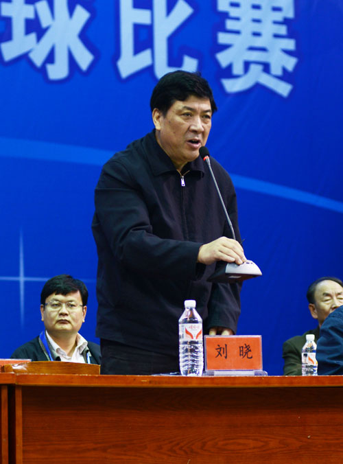 湖南省政协副主席刘晓宣布第九届全国高校“校长杯”乒乓赛正式开幕。