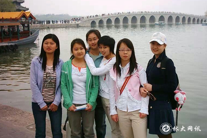 李粤玲(左二)与大学同学合影