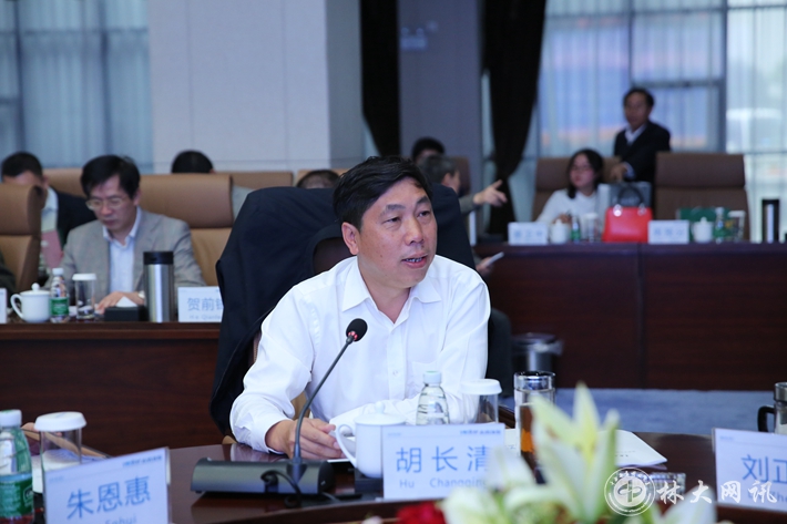 三、中南林科大的责任、优势和作为。在全球转轨中,中国面临着巨大的机会,也面临着系统性的风险。倾巢之下焉有完卵?在转轨过程中,作为人才培养和学术研究的高校,我们应该怎么做?胡长清认为,第一,学校是出思想、出技术、出主意的地方。我们要选择一个正确的方向,按照“社会需要、百姓欢迎、做得成”的标准去选择正确的目标。我们从现在开始,要集中精力,做该做的事情。第二,中国必须创新才有出路,现在是比以往任何一个时代需要技术的时代,是资本追逐技术的时代,一定要有高质量的技术支撑企业的发展。学校可以从思想、技术和战略方面搞好智库建设。我们每一个学科带头人,都要认真考虑方向,一是固有的方向和需求,我们有自己的优势,有内外的需求;二是有一个强有力的团队,可以由优秀的学科带头人或学术带头人组建一个个能干的团队。第三,学术科研必须尊重科学规律。作为学校管理者,我们要清醒地认识到这个问题:我们办的是大学,要为学校学术科研工作者努力形成一种高效的机制,合理的利益分配和组织分配激励制度,给他们一个好的机制,一个好的团队,形成一种尊重科学重视科学的环境和小气候,为学校科研工作者撑起一片天。