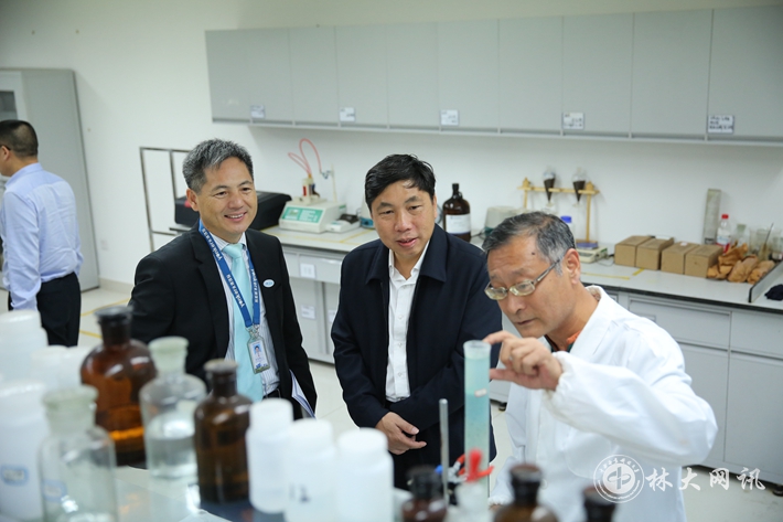 在公司一楼球幕影院,与会人员观看了宣传片。在六楼研究院,贺前锋向胡长清一行介绍了公司在土壤修复、污水处理、清洁能源及重金属治理等方面的情况,大家饶有兴趣地参观了有关环保仪器、设备和研究情况。