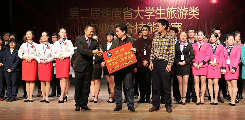 在大赛闭幕式上,组委会宣布2016年第三届湖南省大学生旅游类专业综合技能竞赛将由湖南商学院承办。我校旅游学院院长钟永德与湖南商学院旅游管理学院院长钟志平交接了承办权。(文/学记团何俊璇、刘蕊蕊 教务处袁伟健 旅游学院孙文 图/刘 凯)