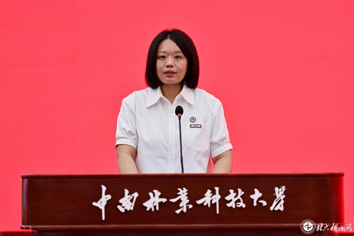 党委副书记、校长仇怡在致辞中向全体新生表示欢迎和祝贺。她以《好问》为题,希望新生们溯求真知,在知识沃土里深耕探索之问,以“问”为镐,开垦出属于自己的思想绿洲;辨识本心,在成长道路上勤修自省之问,以“问”为镜,成为一个有温度、有胸怀、有格局的“大写的人”,让正直、真诚、善良成为青春最动人的底色;勇担使命,在时代洪流中叩响青春之问,以“问”为帆,紧扣国家之需、时代之需,将个人的“小我”融入服务绿色发展、建设美丽中国的“大我”之中,在时代洪流中找到自己的方向,让青春与时代的脉搏同频共振。她寄语新生永葆“好问”的热忱与勇气,在知识的沃土中探索真理,在成长的道路上认识自我,在时代的召唤中扬帆远航,奋力交出一份无愧于历史、无愧于人民、无愧于时代的青春答卷。